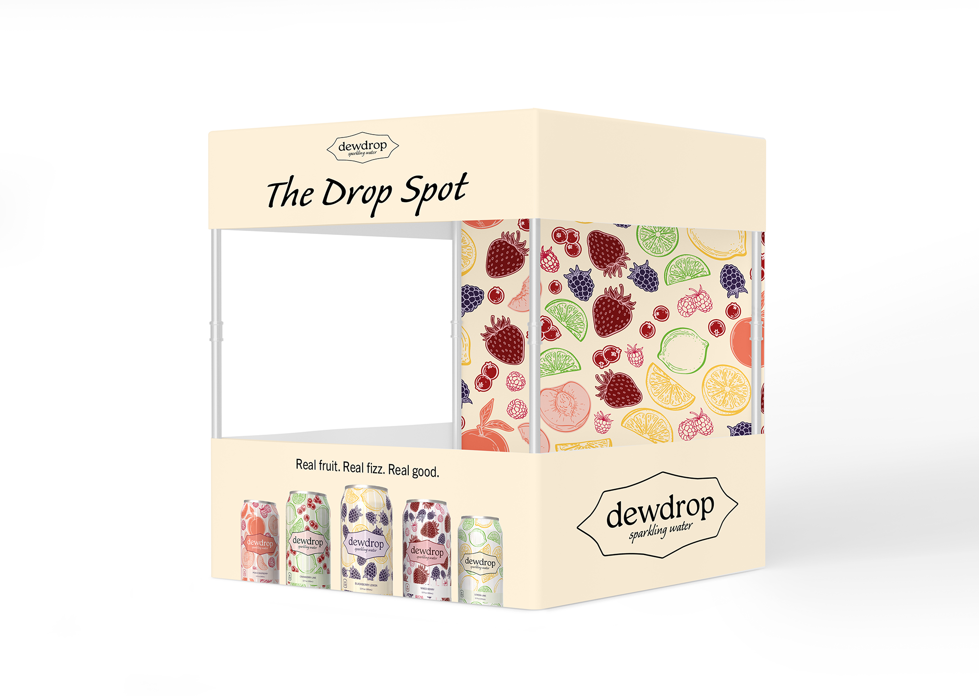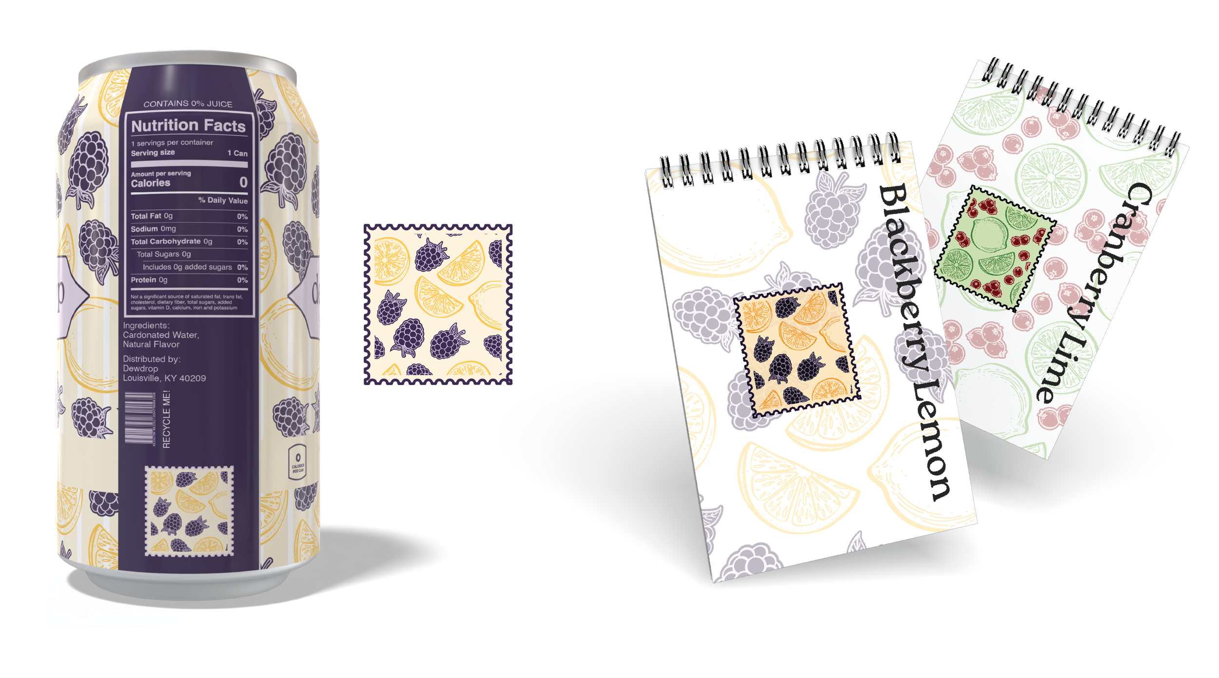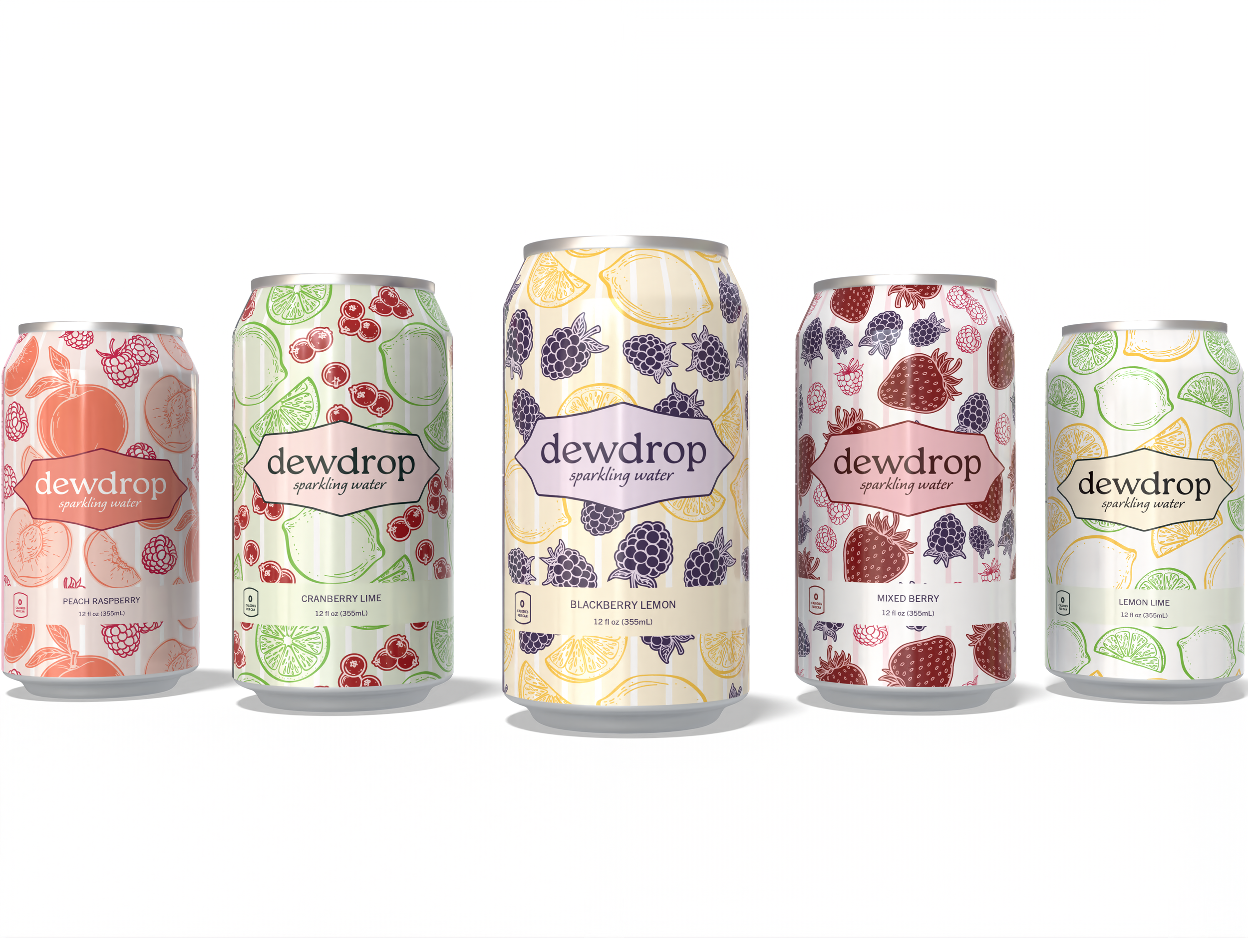 Dewdrop Sparkling Water set out to prove that sparkling water could be more. As someone who enjoys drinking sparkling water, I saw a lack of creativity and artistry in the way it’s packaged and presented to the world. By developing color palettes and patterns of the fruits that inspire each flavor, I wanted every can to be as beautiful to hold as it is refreshing to drink.