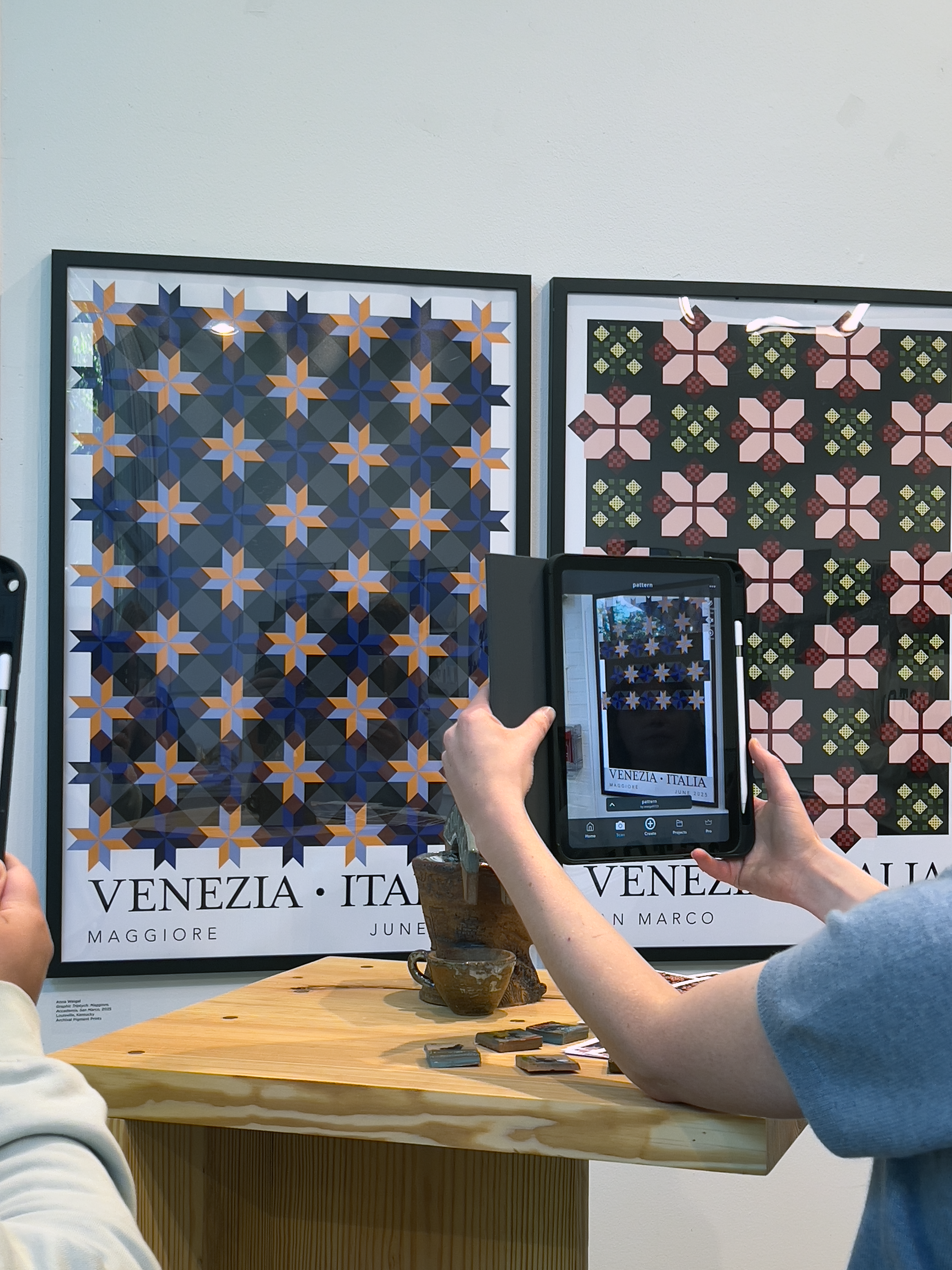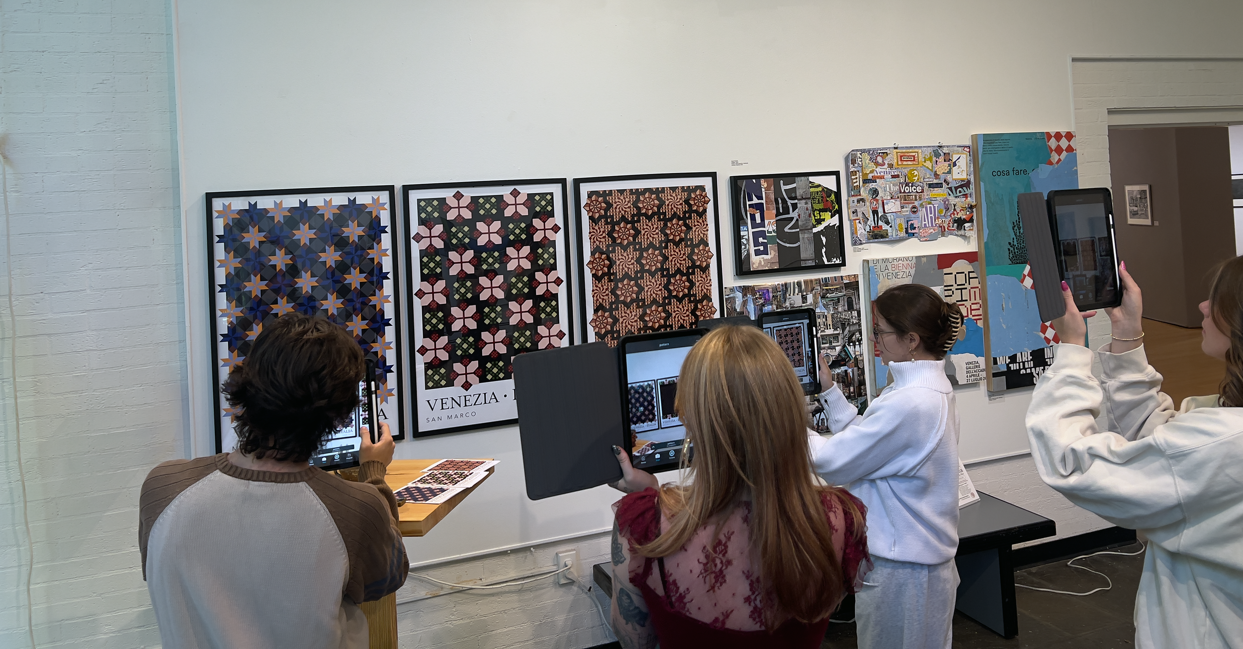 While the Veniceness show was being showcased, I was taking an Emerging Technologies class that included learning about artificial intelligence and augmented reality. After learning Artivive and HaloAR – two augmented reality apps – I was determined to make the Venice Patterns animate only in augmented reality.
